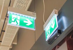 According to the approval specifications for automatic doors in escape routes, a clearly visible "Emergency open" switch is to be mounted next to the escape route door on the escape route side. In accordance with DIN 4844-2 , a green / noctilucent label is attached above the button.