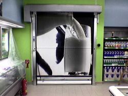 Our "supermarket door" meets the requirements for continuous opening by trained personnel, with individually agreed signal transmitters. Here, the focus of our high-speed doors is on safety and ease of use.