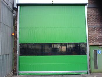 In the classical use of the phrase, a high-speed door is a product that is made from a very special type of plastic and has very fast opening and closing times. In addition to the term "high-speed door", such doors are also sold under the terms "PVC roller door" or screen door.