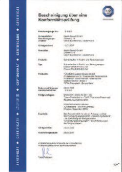 With consideration of DGUV 208-44 and DIN EN 13241-1, the door was tested by TÜV Süd and then conformity declaration TT019/1 (de)was drawn up.